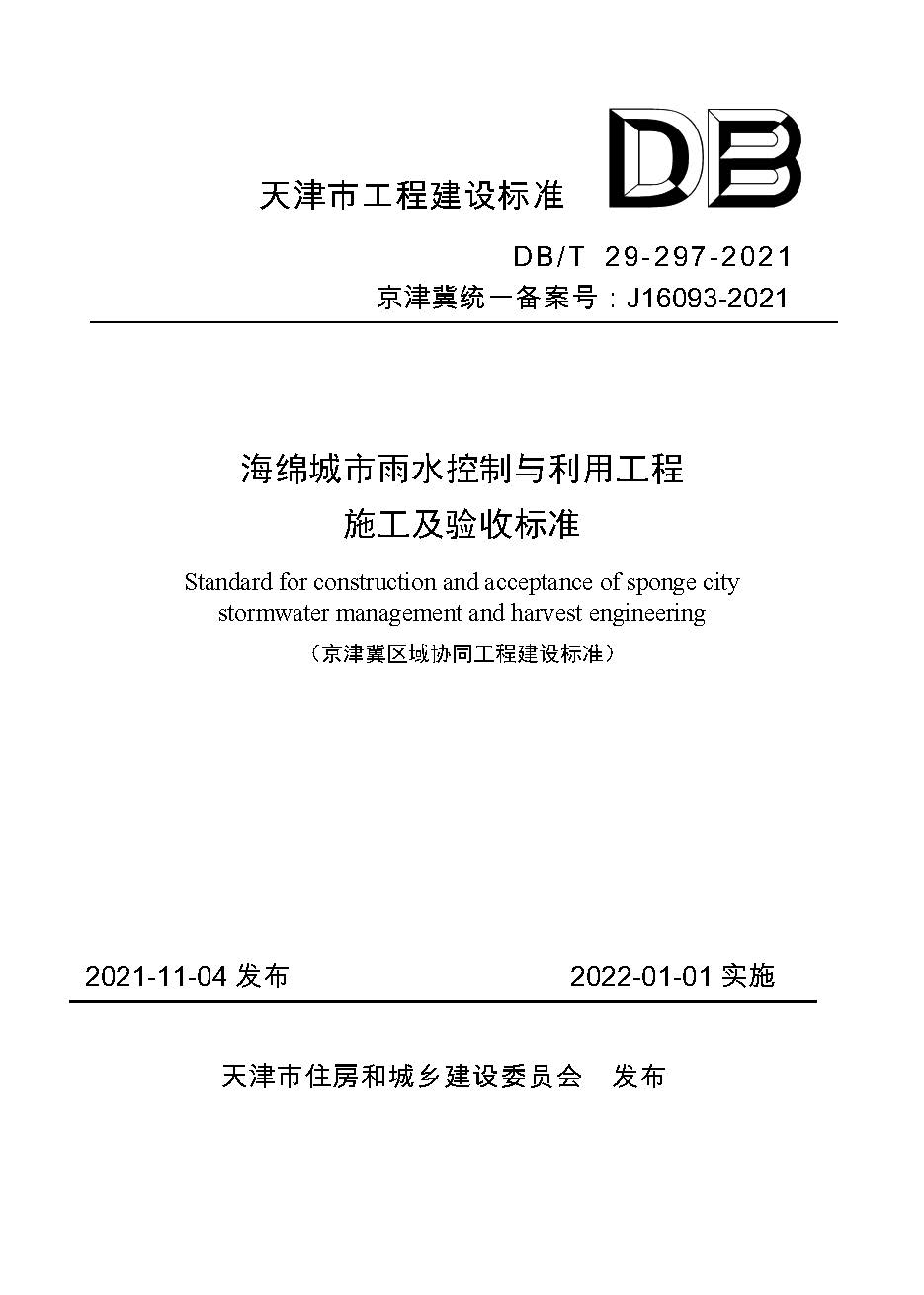 天津市海綿城市雨水控制與利用工程施工及驗(yàn)收標(biāo)準(zhǔn)